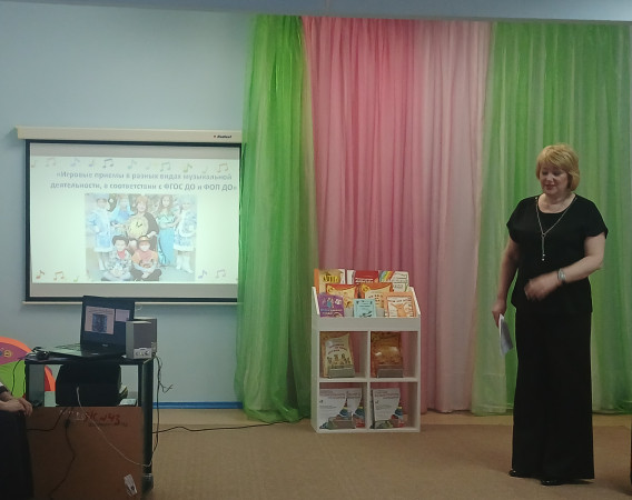 1 апреля в МБДОУ д/с №43 «Теремок» прошел семинар-практикум для музыкальных руководителей района по теме «Игровые приемы в разных видах музыкальной деятельности в соответствии с ФОП ДО». Своим опытом работы поделилась музыкальный руководитель высшей квалификационной категории Завражнова Елена Николаевна.