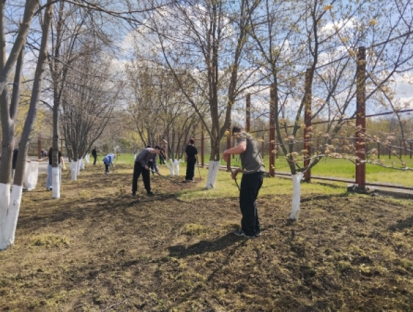 Побелили более ста деревьев, высадили 14 новых деревьев и 9 кустов роз.
